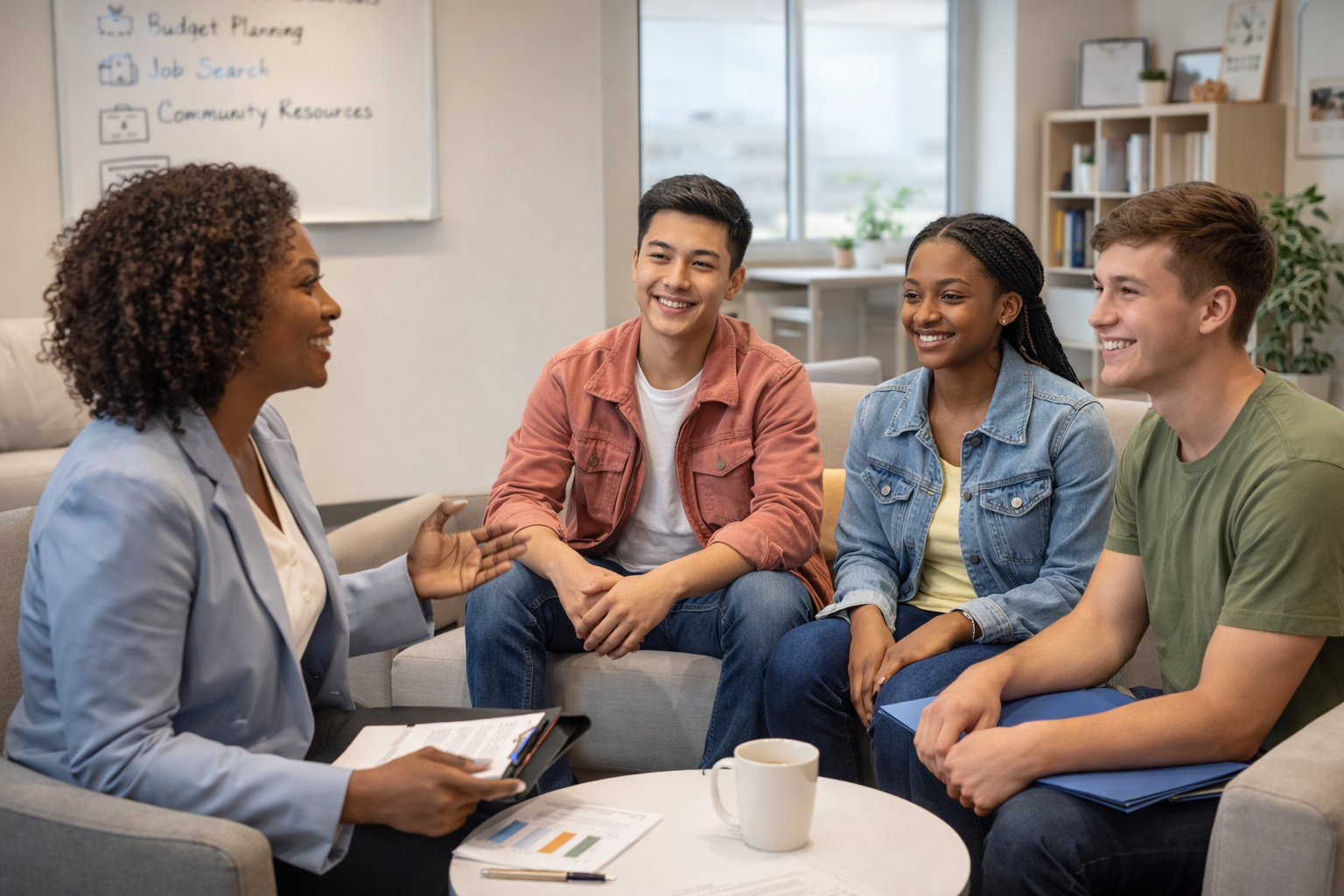 Youth work with staff to develop personal goals related to education, employment, housing, and personal development.
