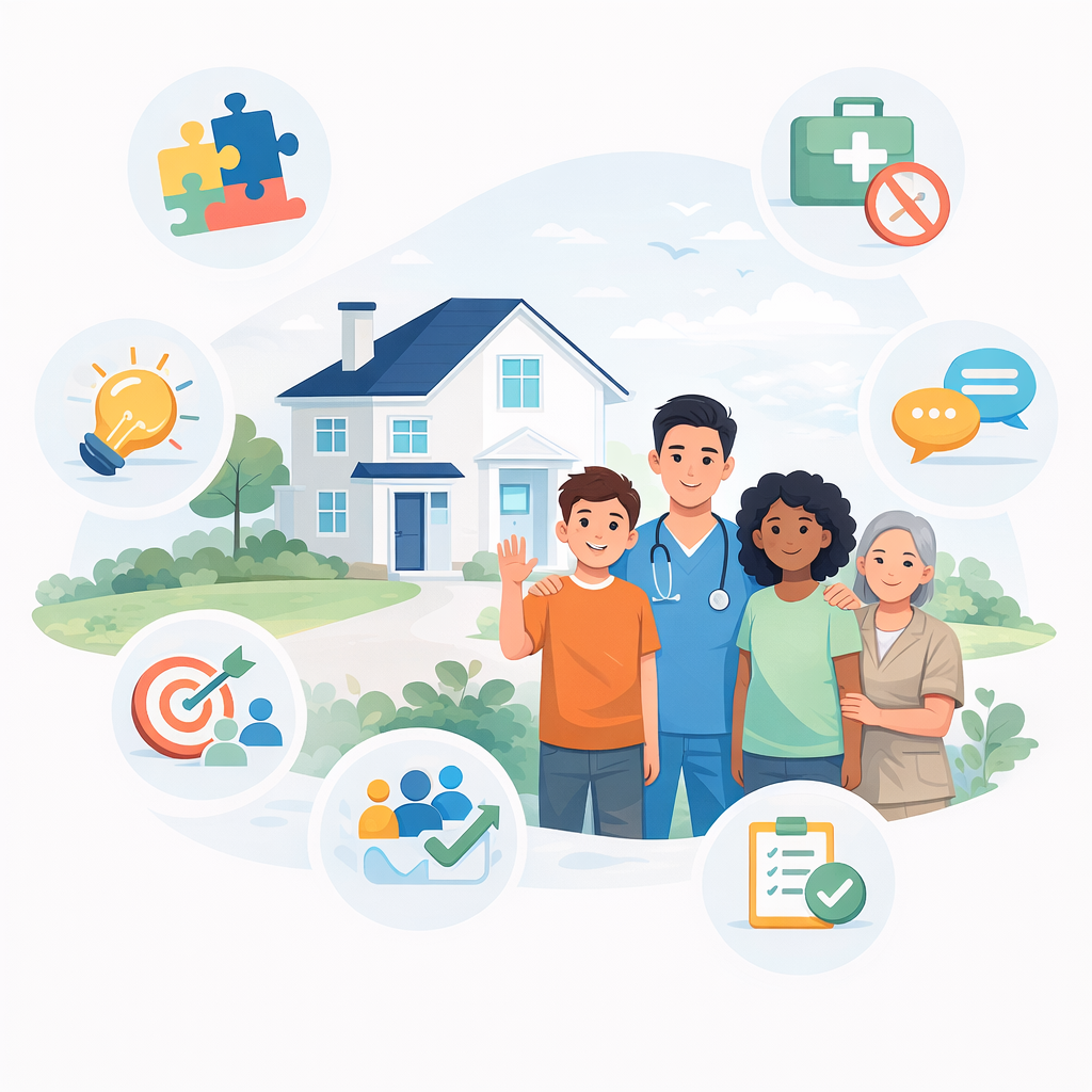 The residential program provides structured daily support and supervision to help residents build independence while ensuring their safety and wellbeing.